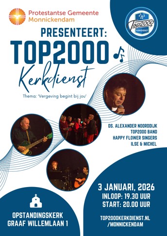 Geniet van de zang en muziek van de nummers uit de TOP 2000. Met de Waterlandse TOP 2000 band het TOP 2000 Koor en een optreden van Ilse en Michel